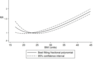 Figure 1: Association between BMI and mortality risk in people with COVID-19.